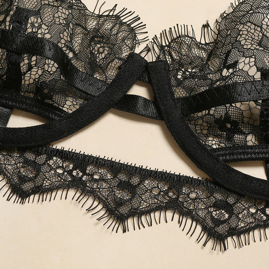 Lace eyelashes three-piece sheer lingerie