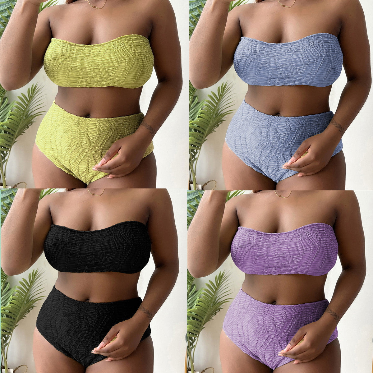 Chic pure-color tube-top plus-size bikinis