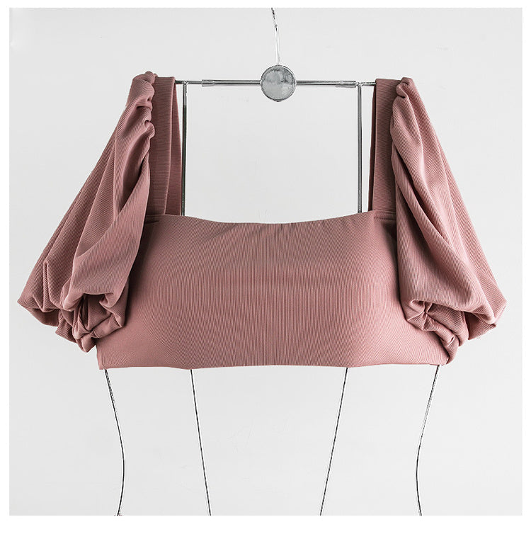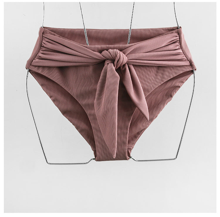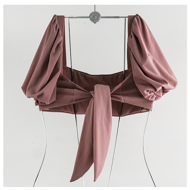 Bubble sleeve lace-up bow split bikini sets